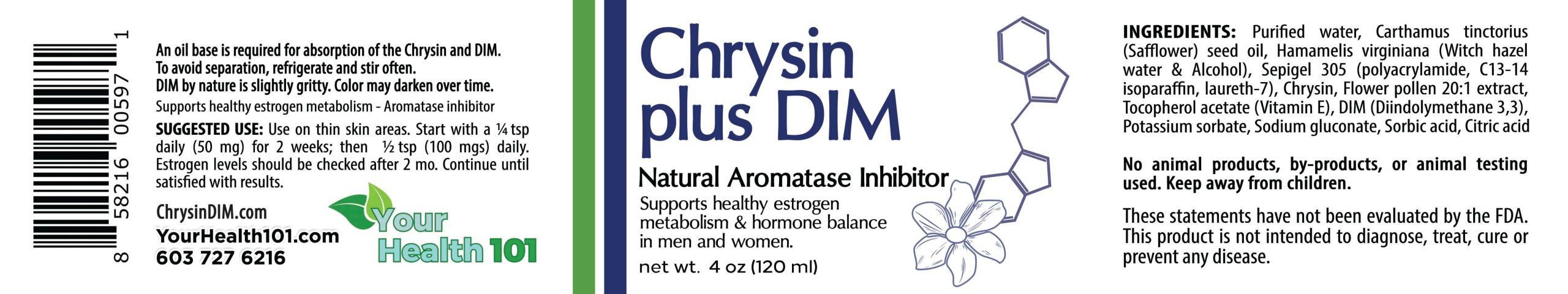 Chrysin with DIM is a powerful combination of three natural compounds that offer numerous health benefits. Chrysin, a flavonoid found in honey and propolis, has been studied for its anti-inflammatory and antioxidant properties. It may also help support healthy testosterone levels in men, reduce gynecomastia (man boobs) and chest fat. DIM, short for diindolylmethane, has been shown to help balance estradiol (estrogen) levels in the body and support healthy hormone metabolism. The combination of Chrysin, DIM and the Swedish Pollen extracts is a potent natural mix gaining traction for his strong positive reviews.
